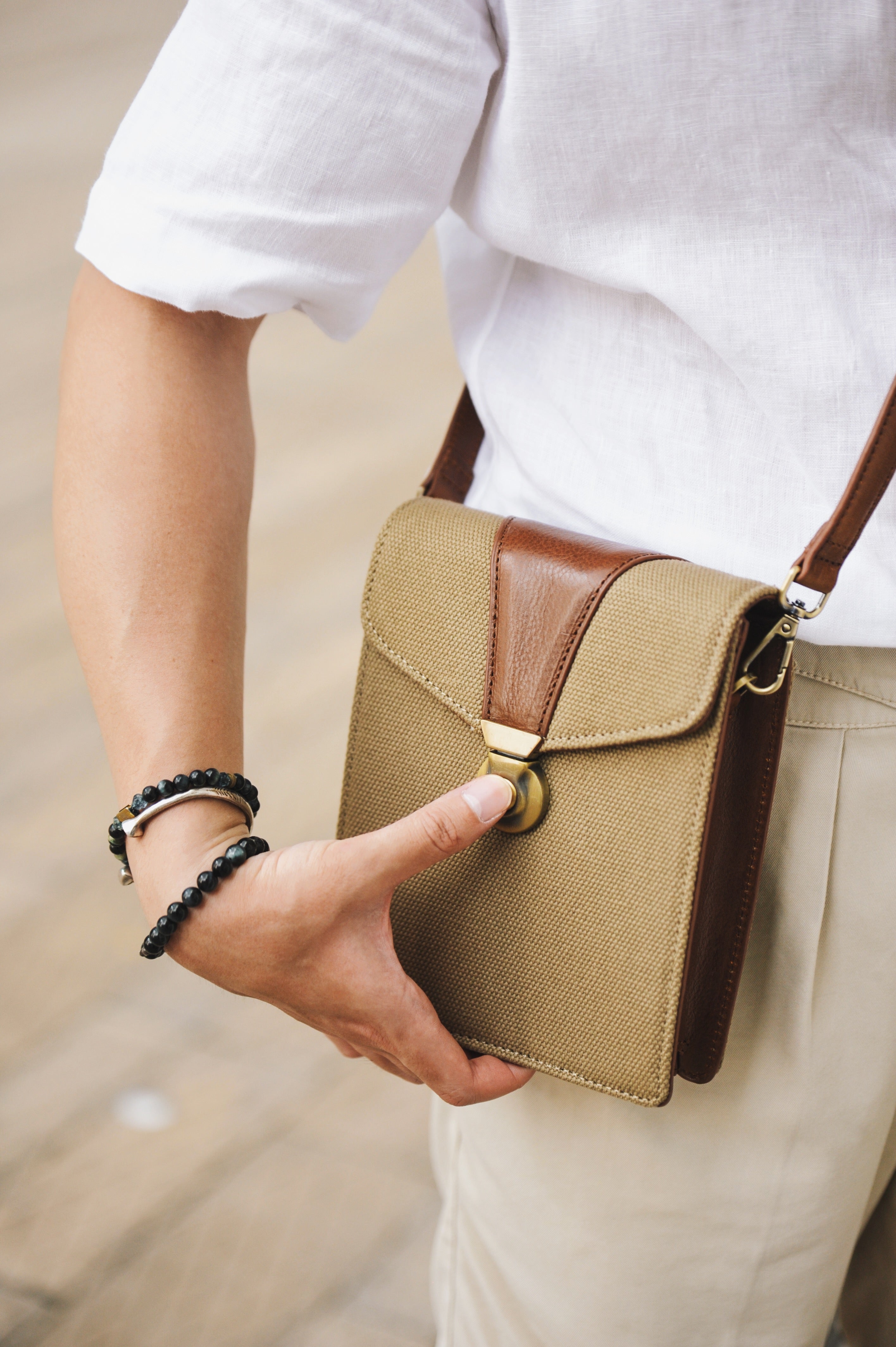 Explorer Canvas Crossbody (Olive Green/ Cognac)