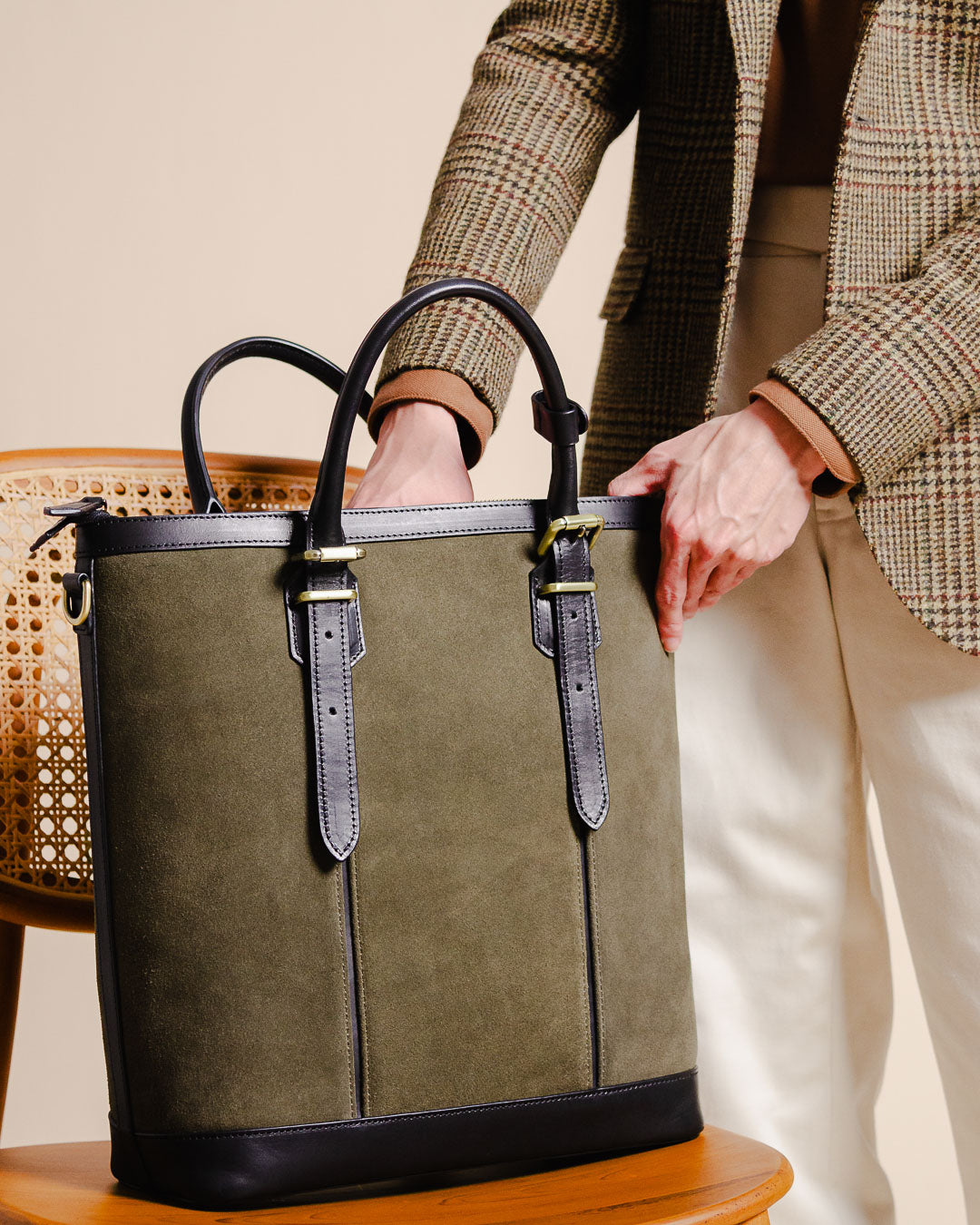 For business individuals who are always on the move. Crafted in durable Tobacco cow suede, the Suede Traveller Tote works perfectly as a business bag during weekdays, and as a versatile hold-all during weekends.
